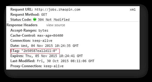 我們看到,ETag中包含了一連串的數(shù)據(jù),這就是計算出來的一個值,如果它發(fā)生變化,說明其頁面內(nèi)容一定發(fā)生了變化。如果頁面沒有發(fā)生變化時,頭信息應(yīng)該如下: